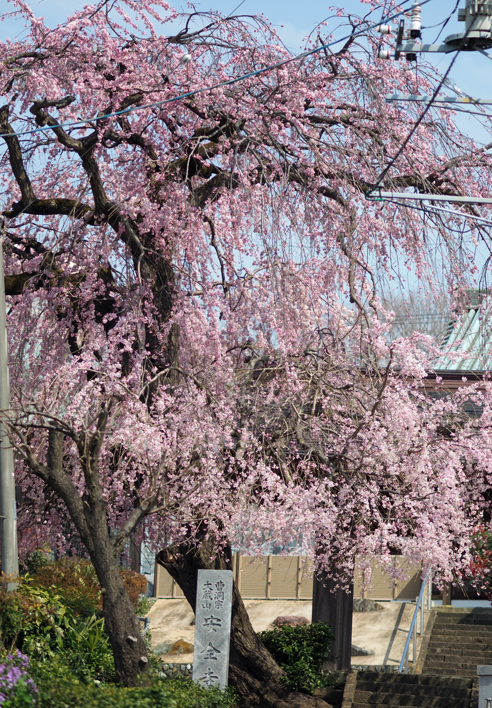 鶴見川沿いの陽光桜は数年前に伐採された。多分北側にある住宅に日があたらないためと想像する。安全寺のしだれ桜はかなりの古木で危険なこともあったかもしれない。こちらも伐採されていた。