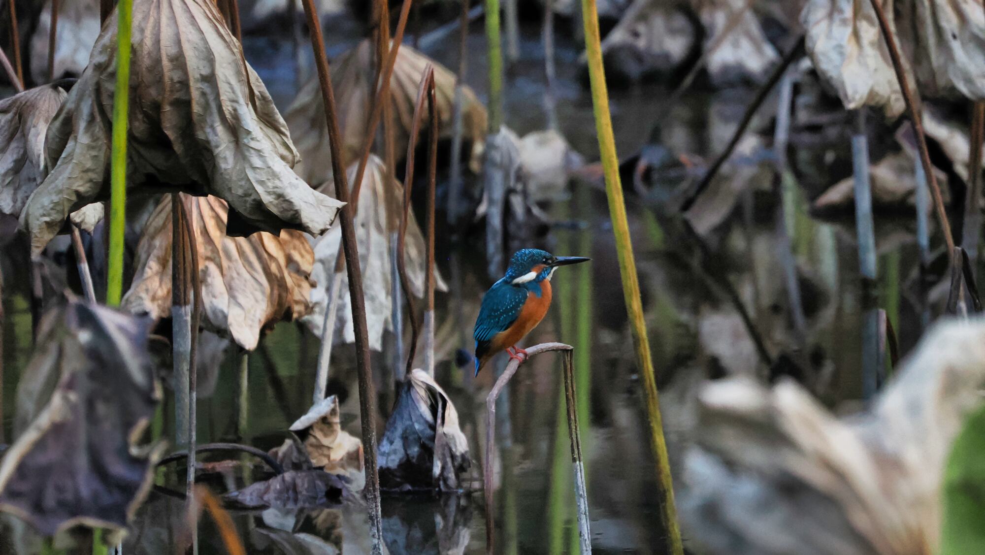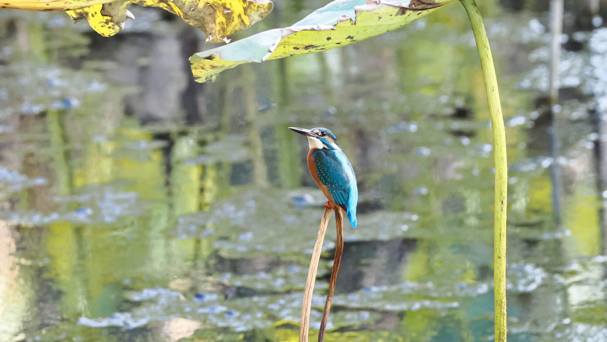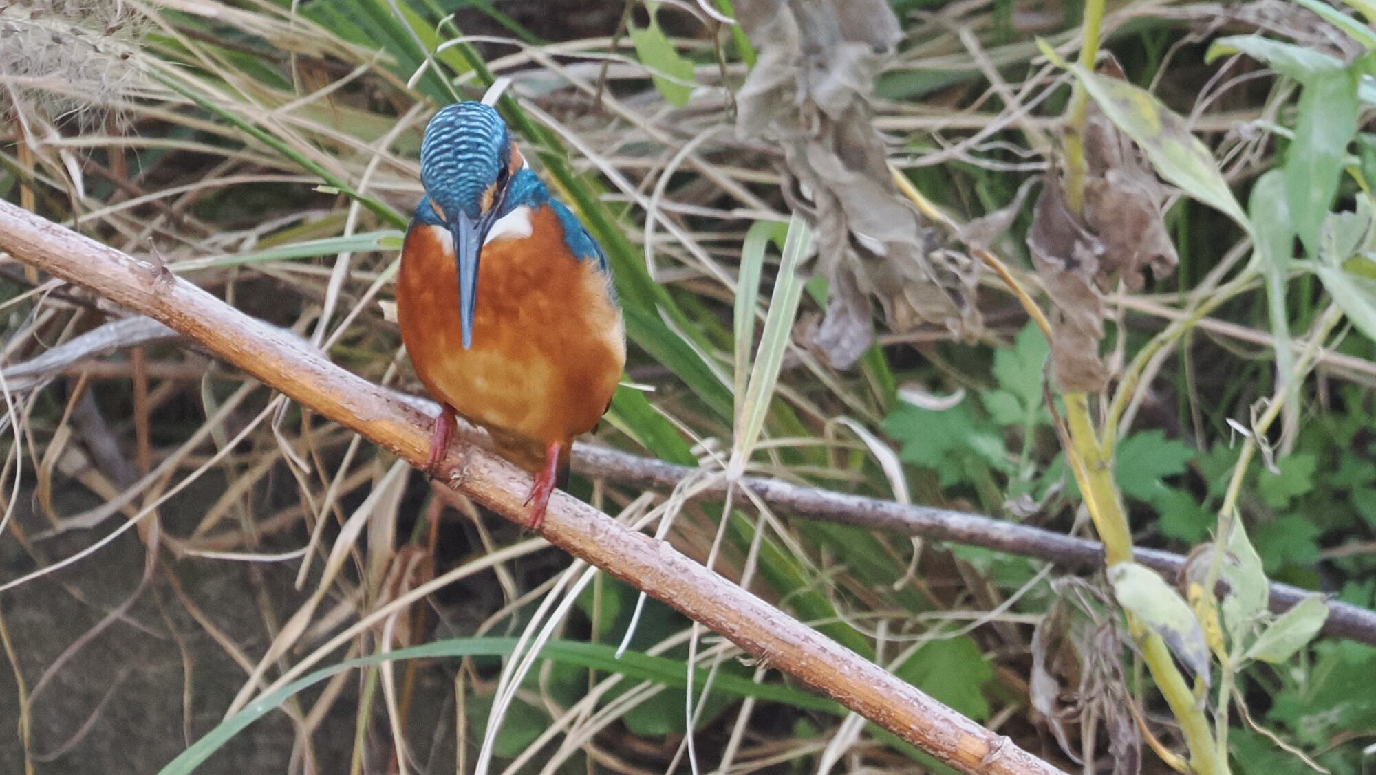 鶴見川から薬師池公園への途中、鶴見川にカワセミがいた。