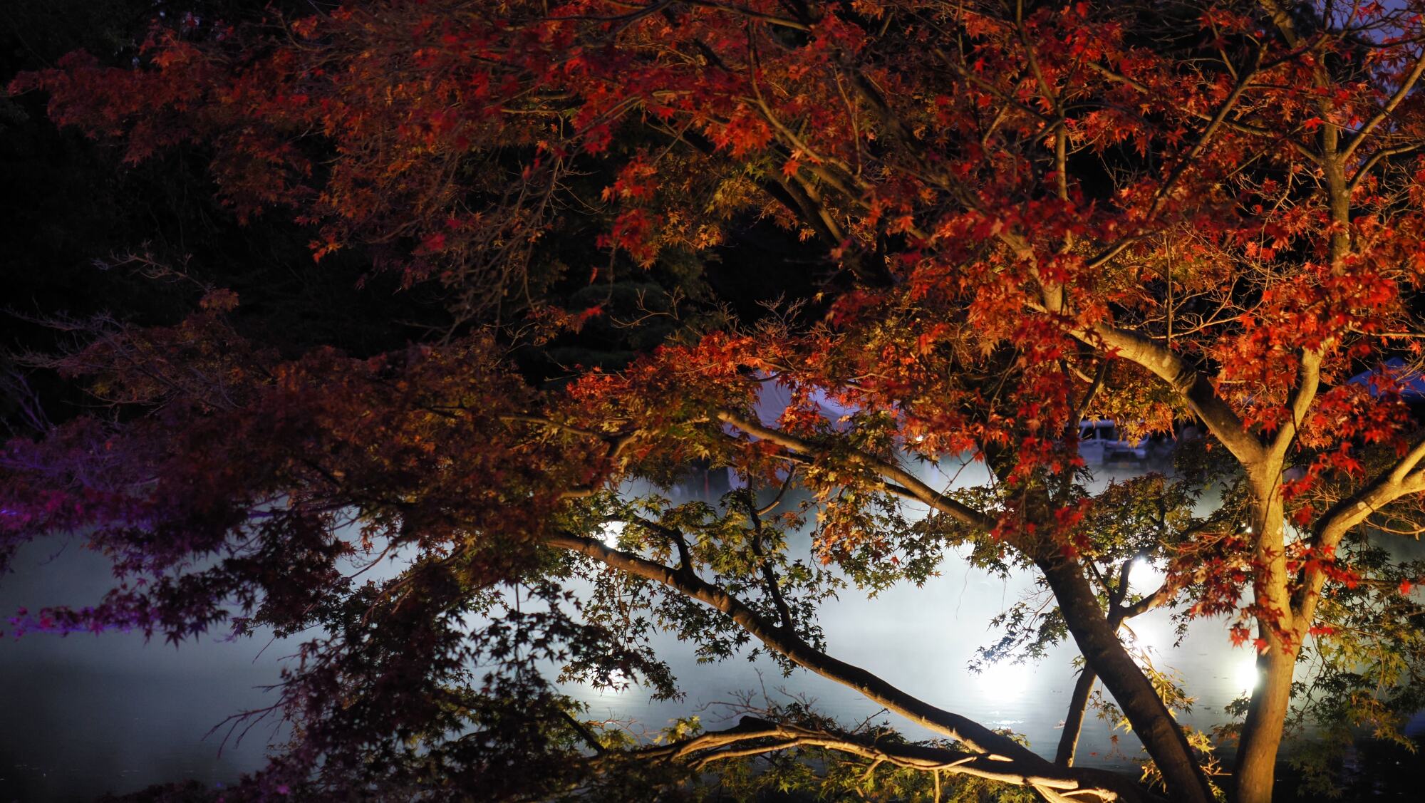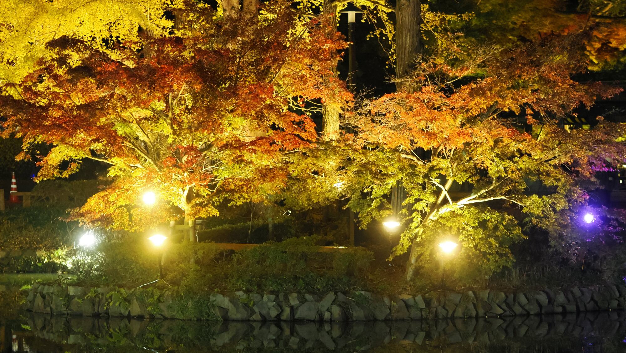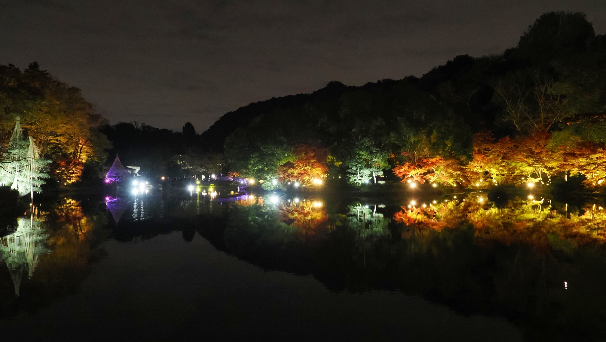 薬師池公園の紅葉ライトアップが11月16日の土曜日から始まった。17日に今年最初のライトアップ撮影にいったが紅葉の見ごろにはまだ早かった。