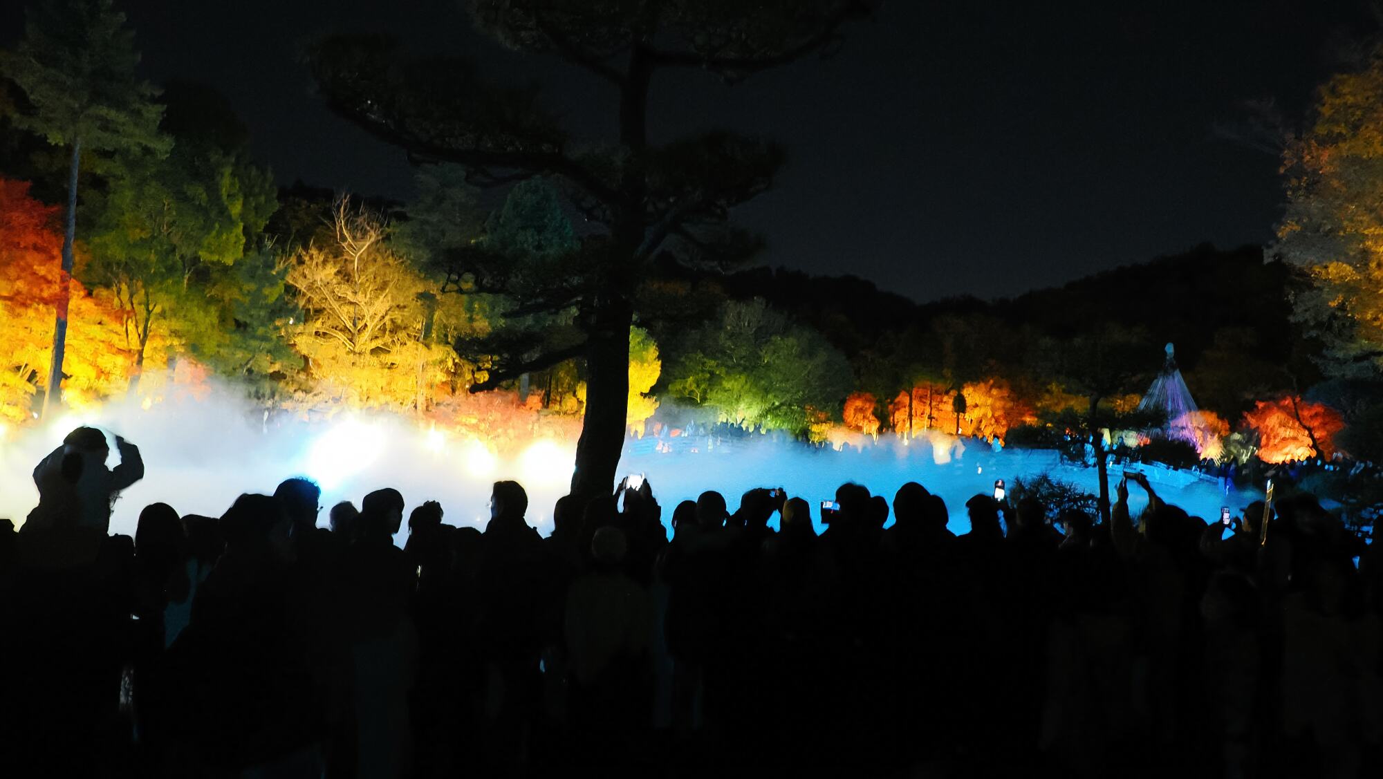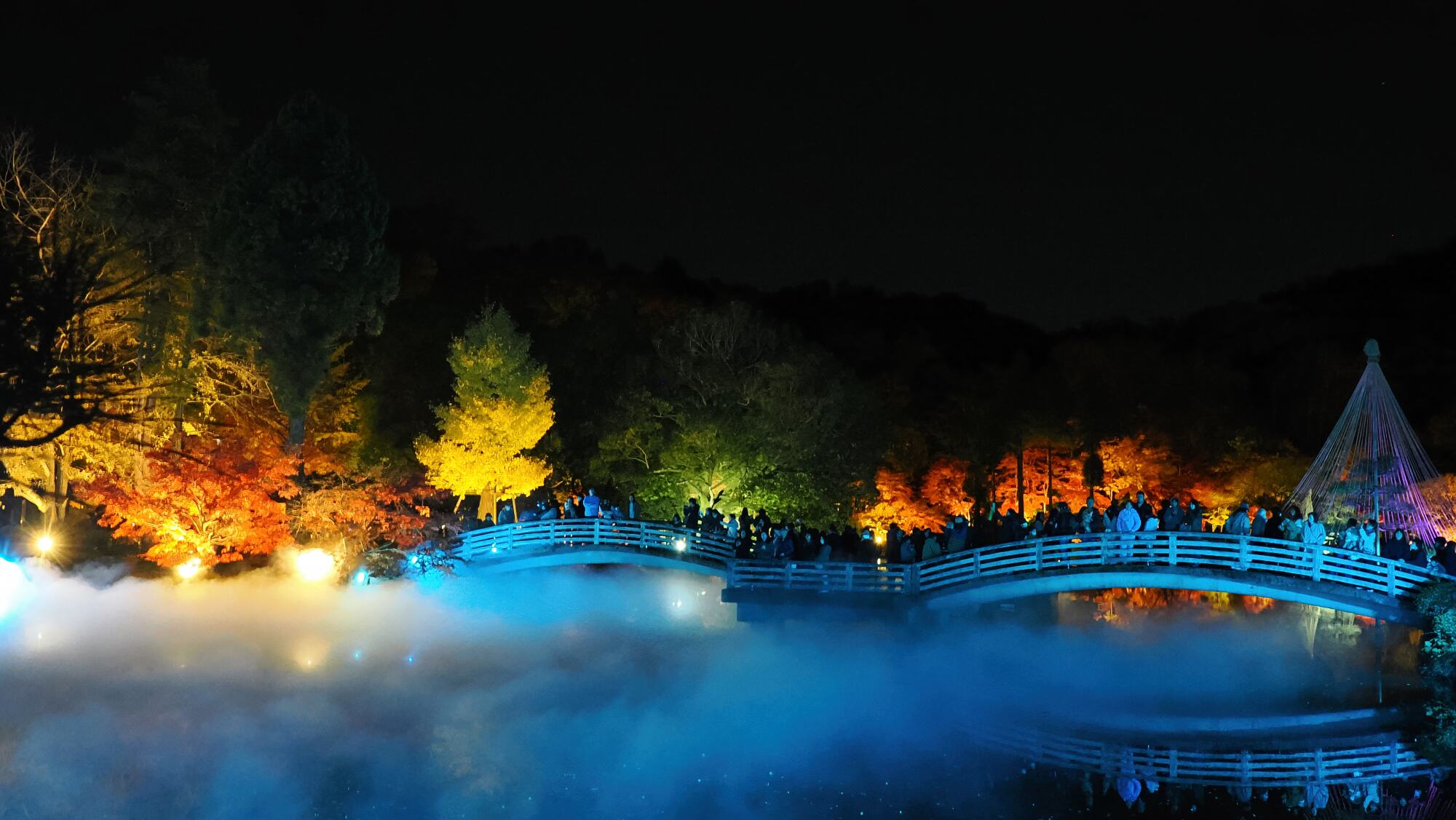 これまでで最も多い人出で、ブルーの太鼓橋の周りには幾重の人垣ができていた。