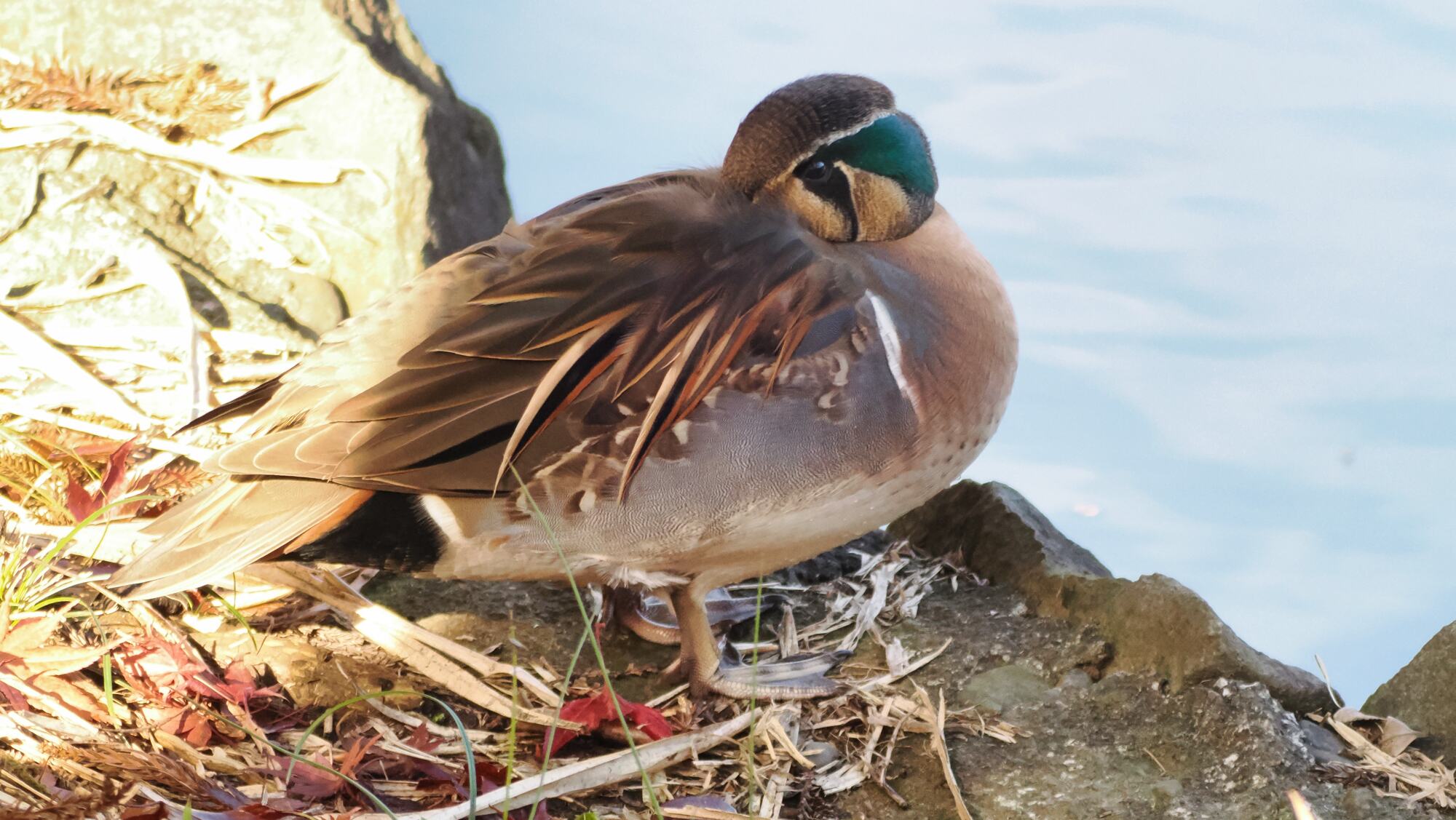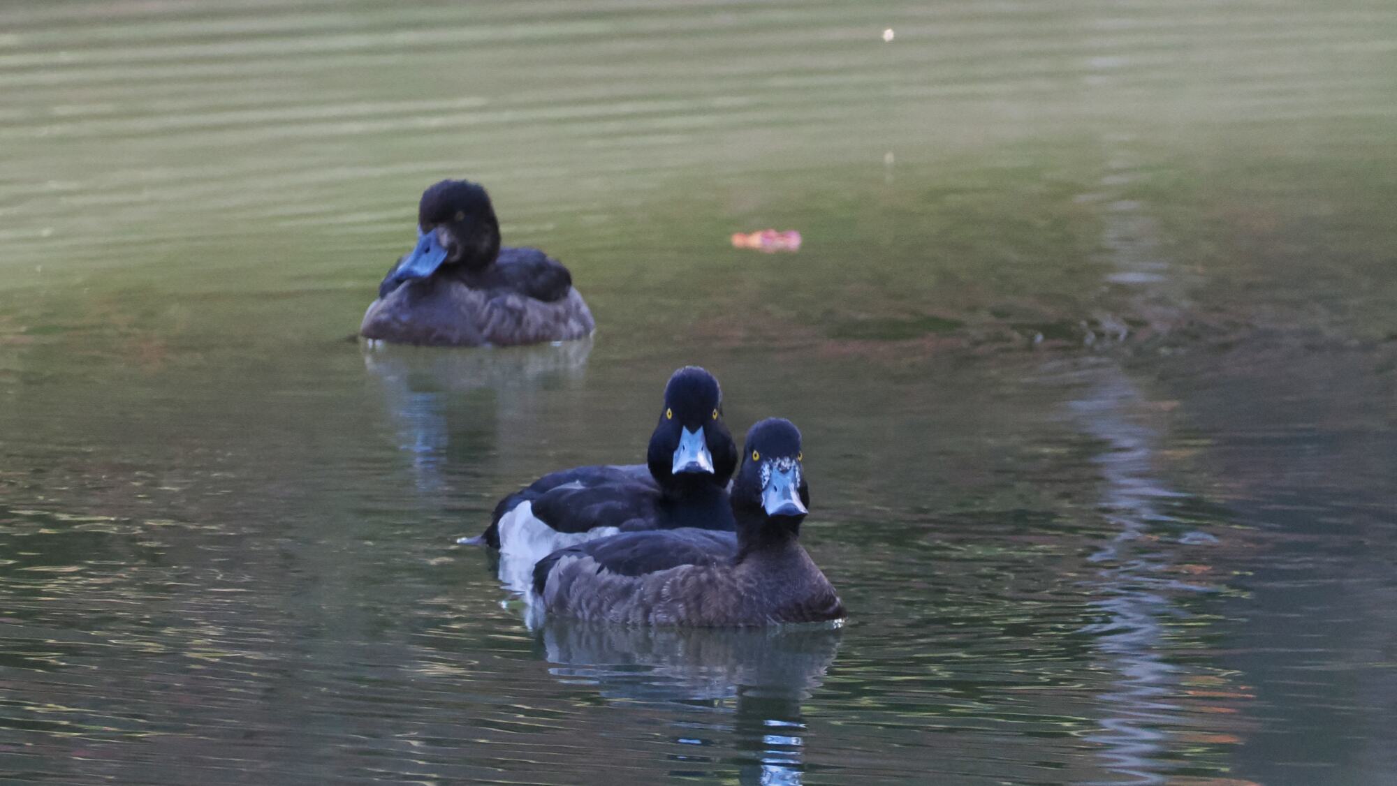 薬師池公園では今年カモの仲間の数が多い。最も多いのがホシハジロ、続いてキンクロハジロ、今年は珍しくトモエガモが一羽きていた。トモエガモは絶滅危惧種に登録されているが最近大幅に増えているとの情報がある。