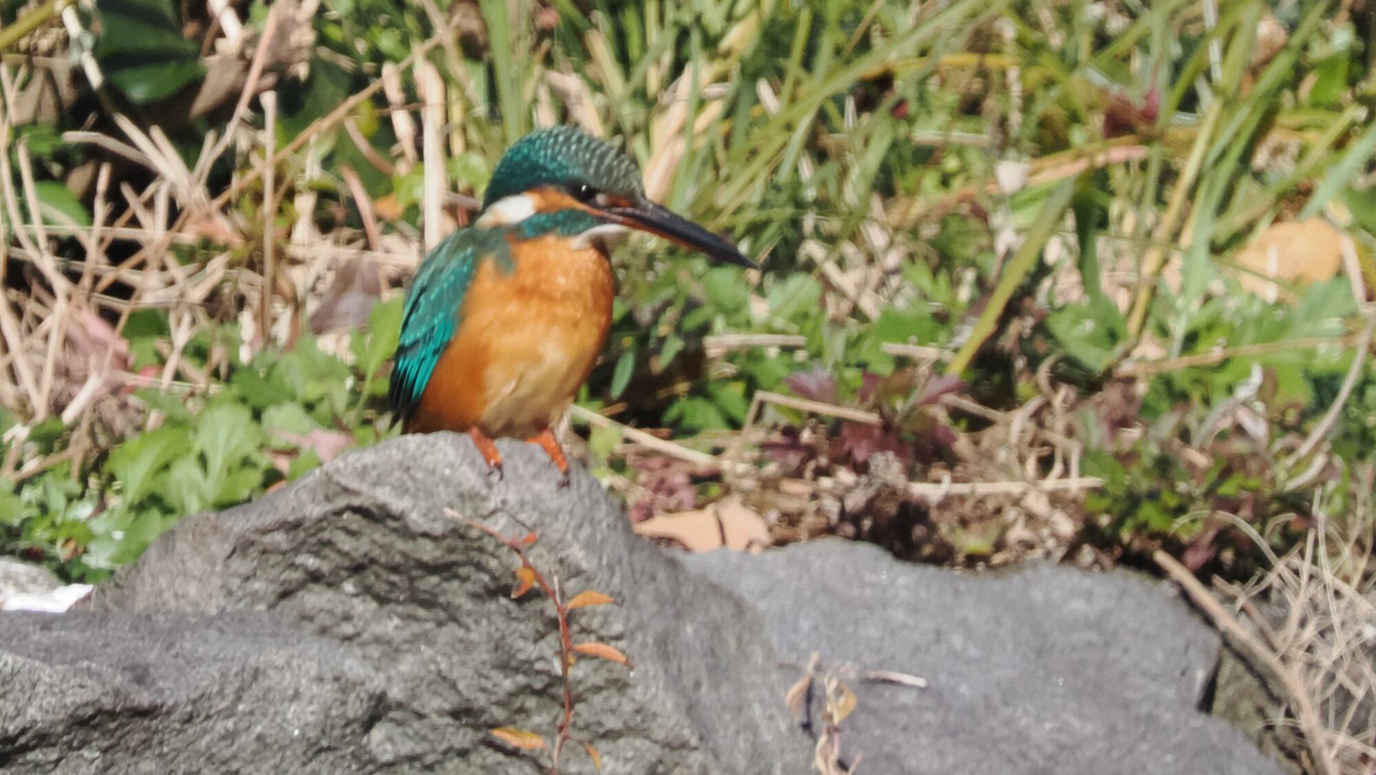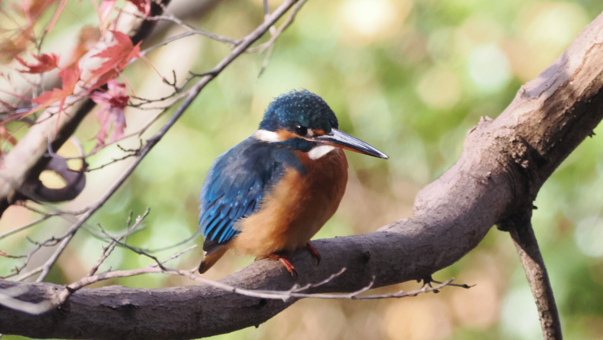 いつものカワセミは人気でカメラマンが集まっていた。万葉草花園の入口にジョウビタキ。