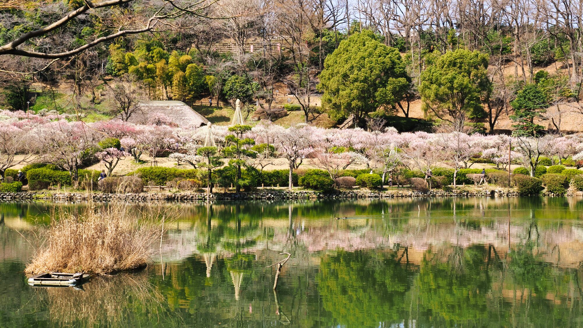 今年の薬師池公園の「梅まつり」は、2025年2月20日(木)から3月16日(日)の期間の開催。今年は3月に入って気温の低い日が続き昨年同様春の草木の開花が遅れている。薬師池公園の梅林は丁度見頃になって、観梅客が写真を撮っていた。