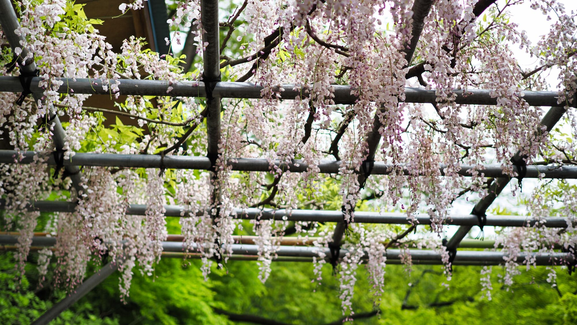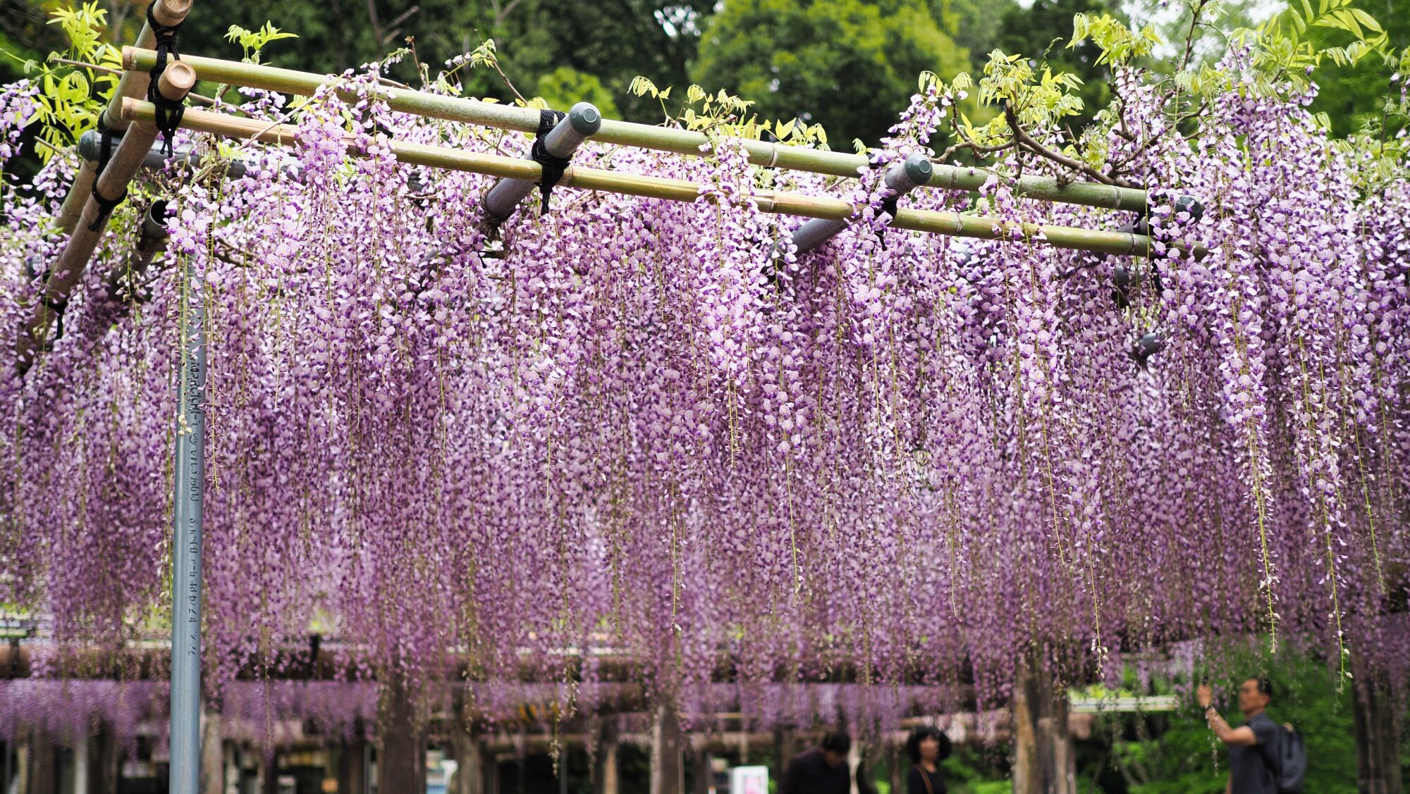 先日、町田ぼたん園の帰りに薬師池に立ち寄り藤の写真を撮ったが、5分咲であった。