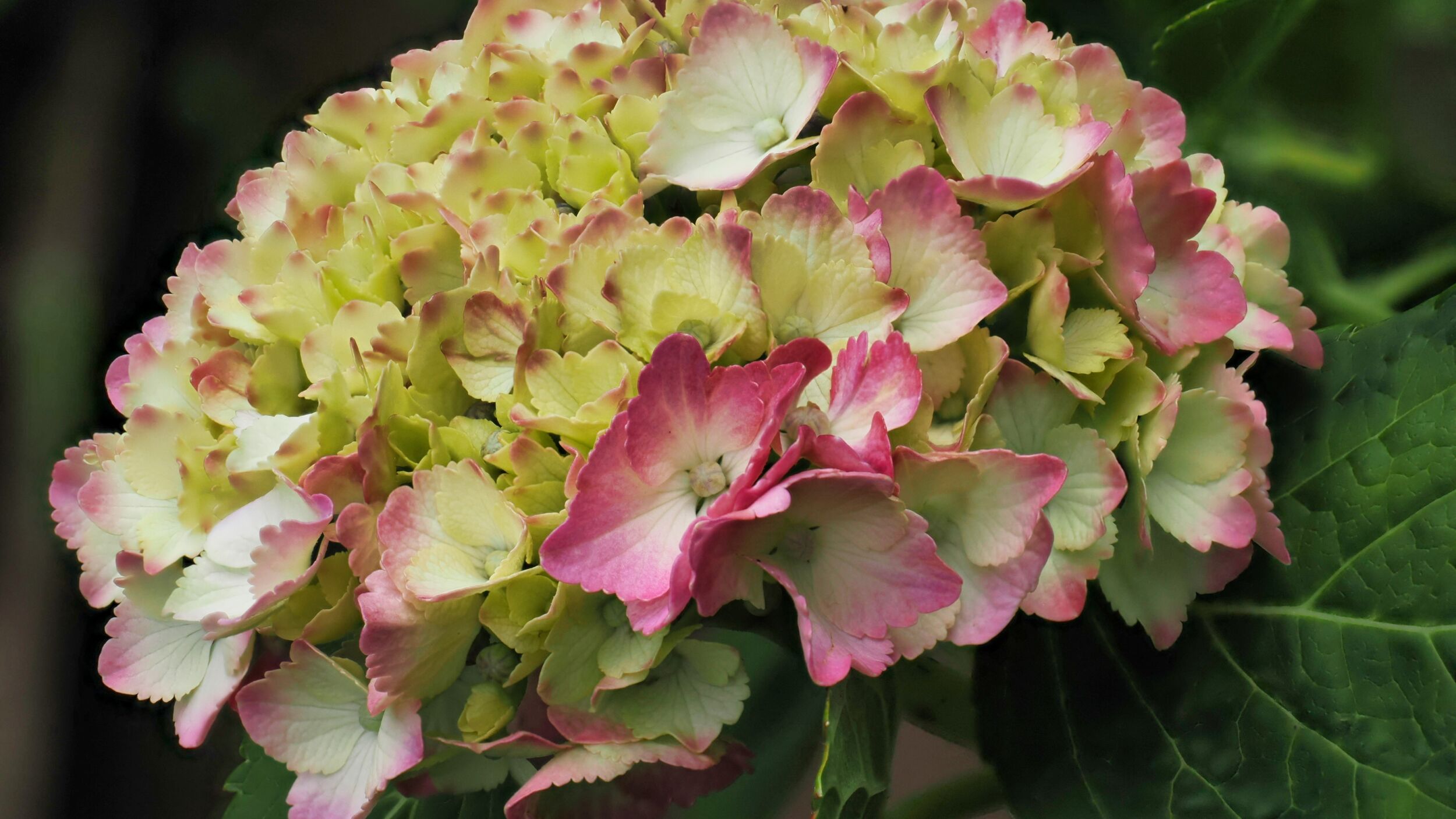 あじさいもちらほら咲いてきたが、見頃はまだ先になる。