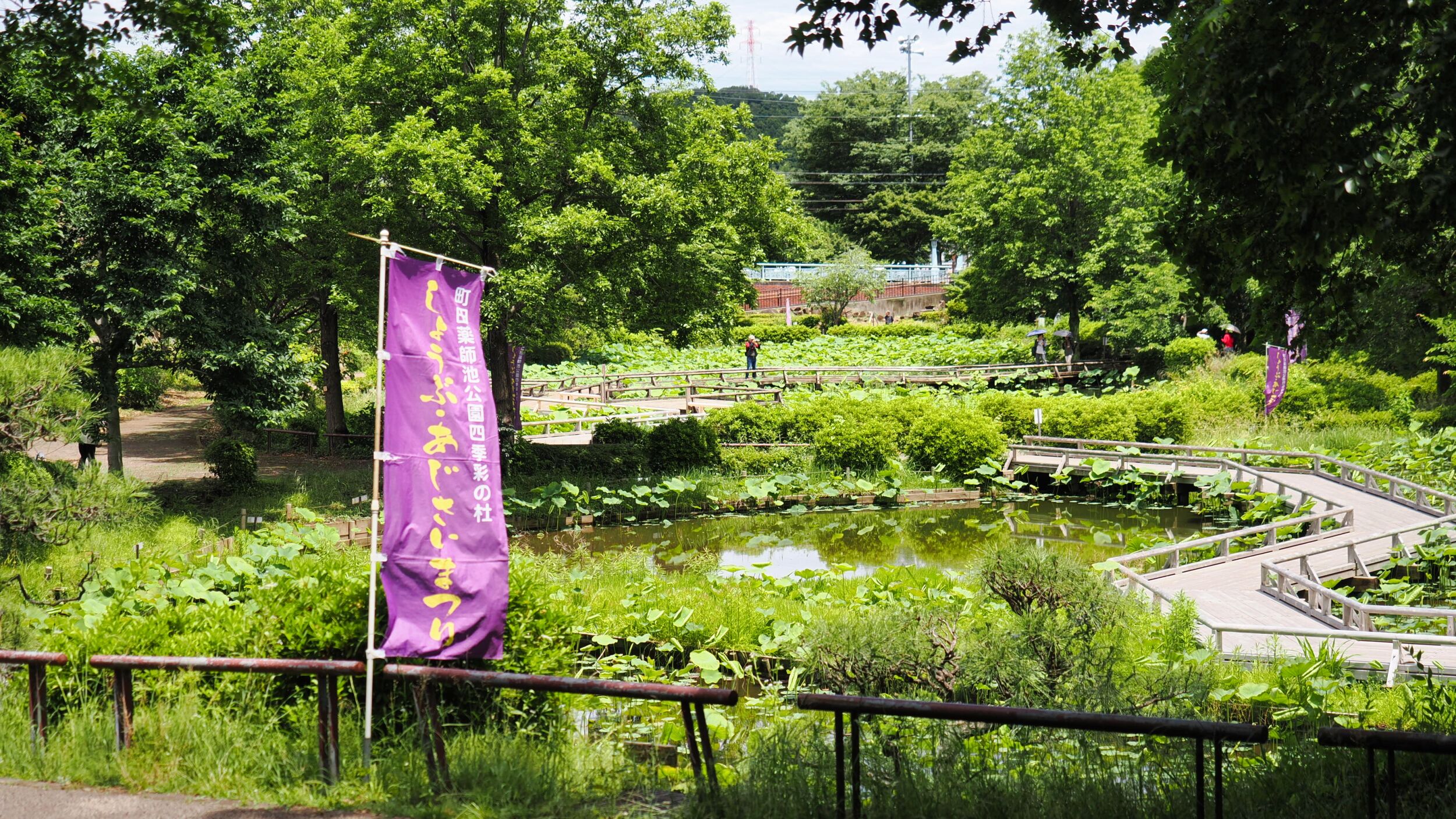 薬師池公園しょうぶ・あじさいまつりが始まった。開催期間は5月31日から6月29日まで。開催期間が長いのは花しょうぶとあじさいの開花がうまい具合にずれるからである。