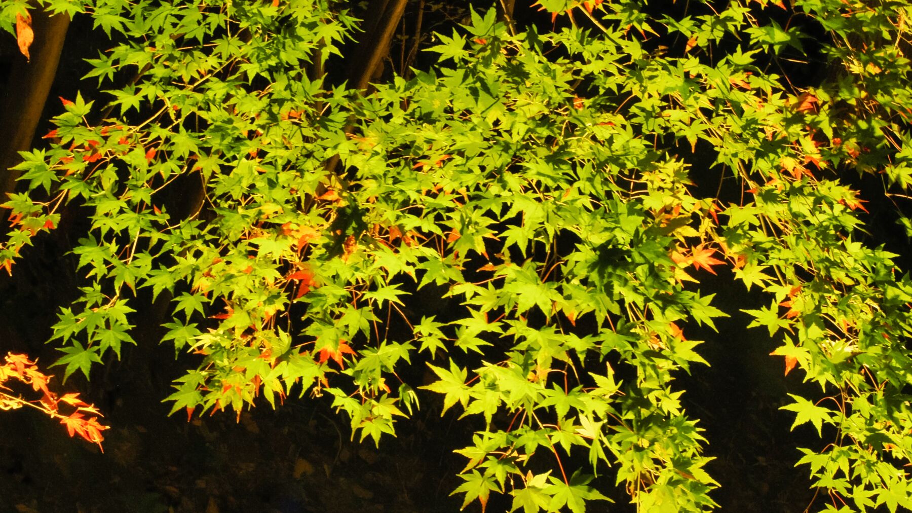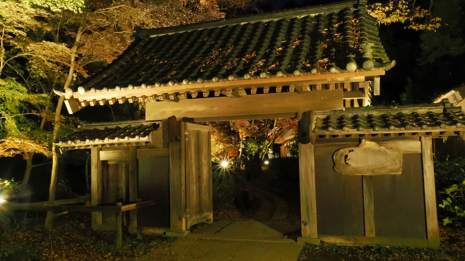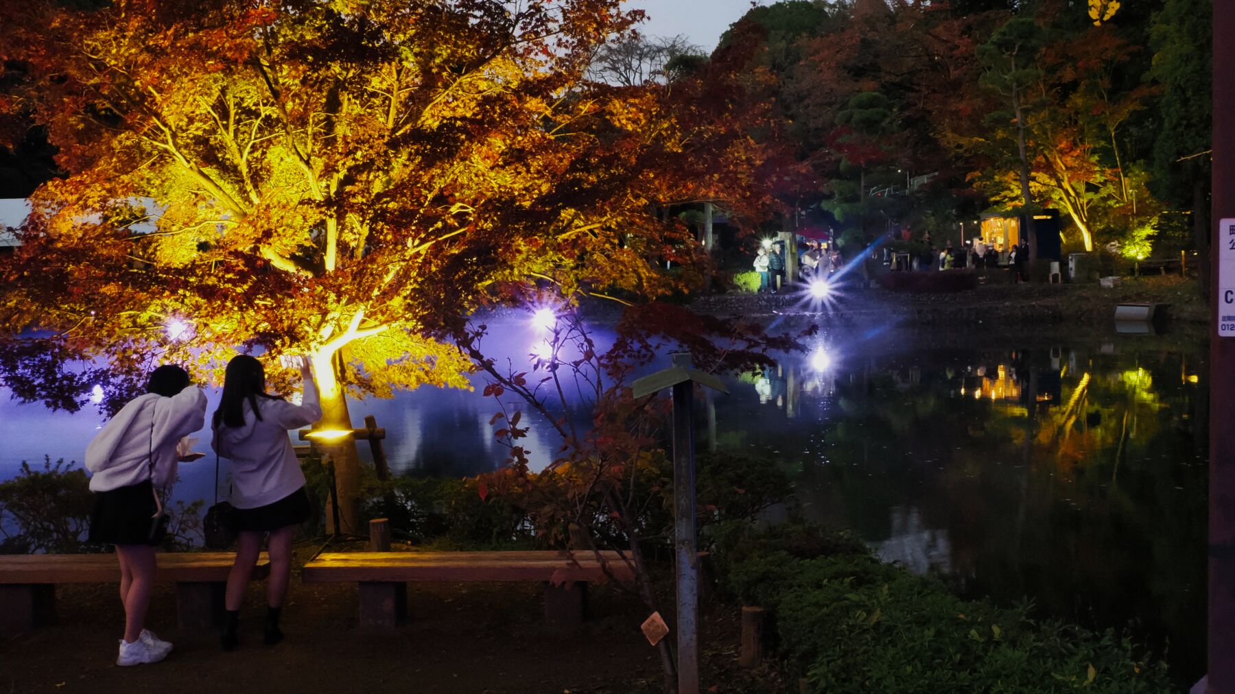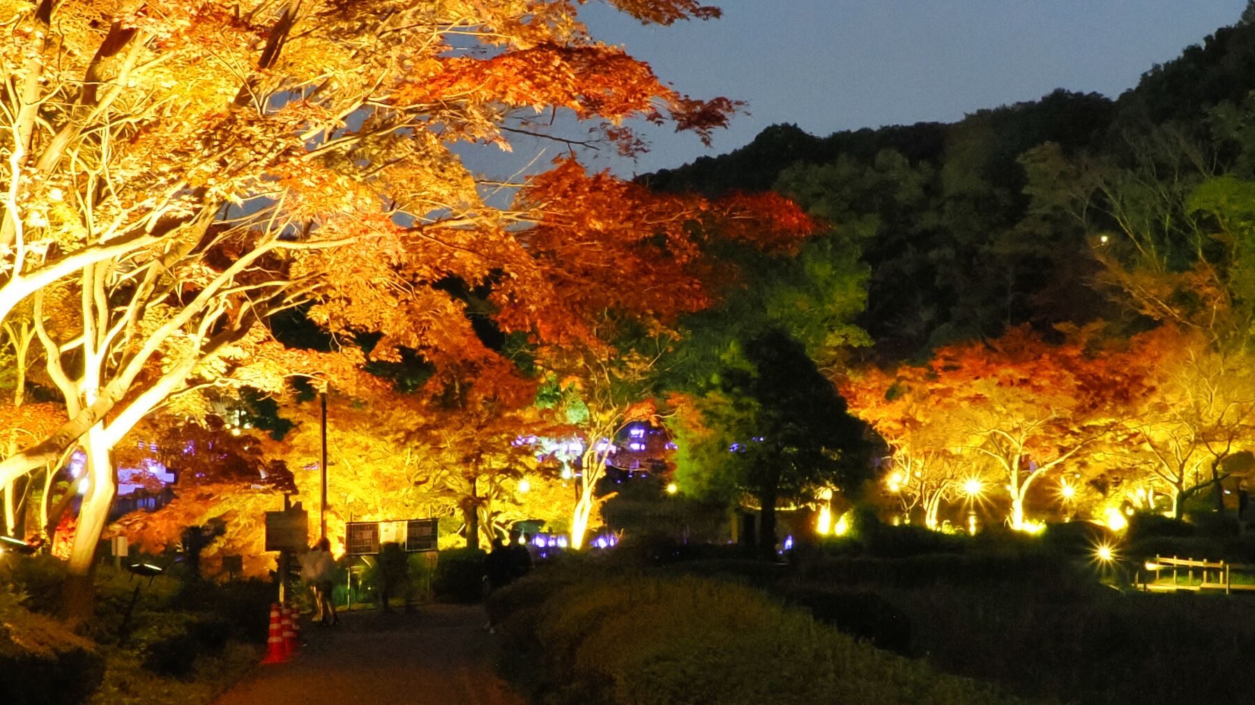 11月15日から薬師池公園のライトアップが始まった。去年から池の縁から霧を発生させて雲海をイメージさせる。今年は藤棚に棒のようなイルミネーションが付けられた。