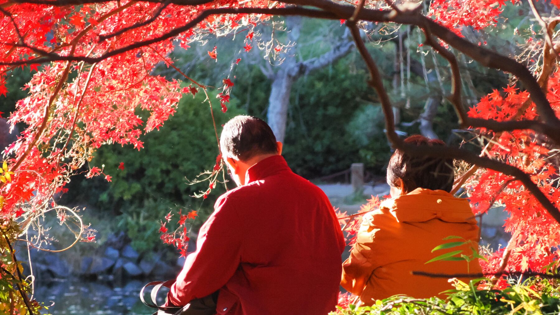 小春日和の最高気温が20度近くなったこの日薬師池公園には最後の紅葉狩りを楽しむ人で賑わった。