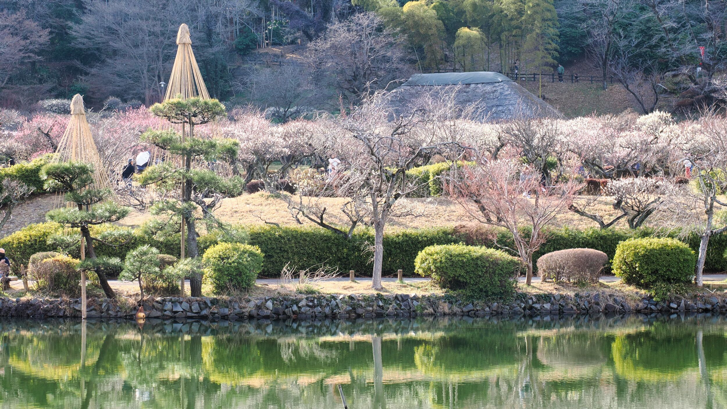 薬師池公園内には梅林があり、約250本の紅白の梅の花を楽しむことができ、見頃となる2/20(金)~3/15(日)の期間、梅まつりが開催されている。