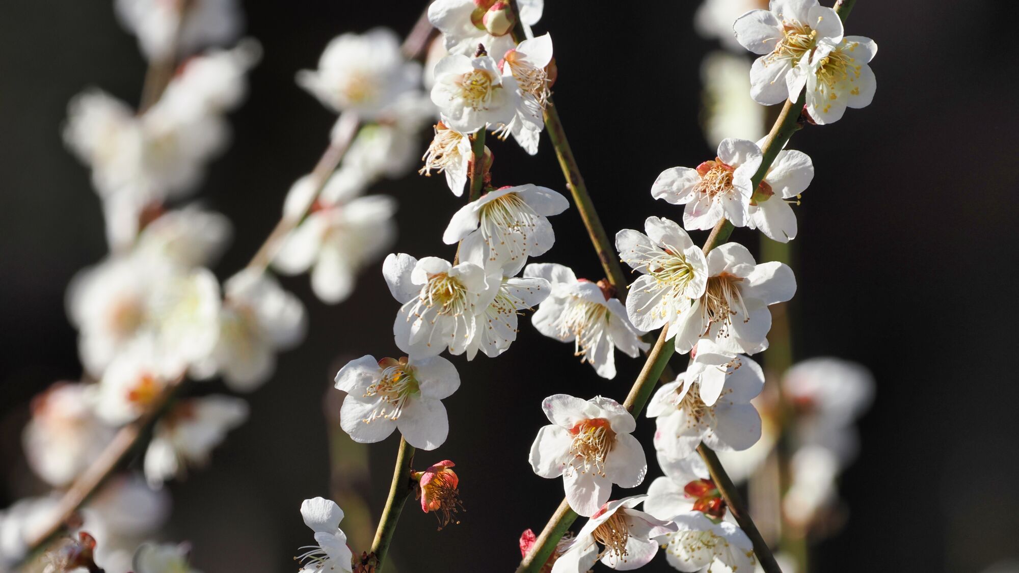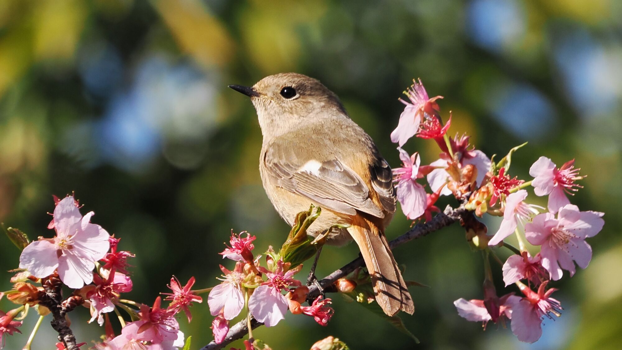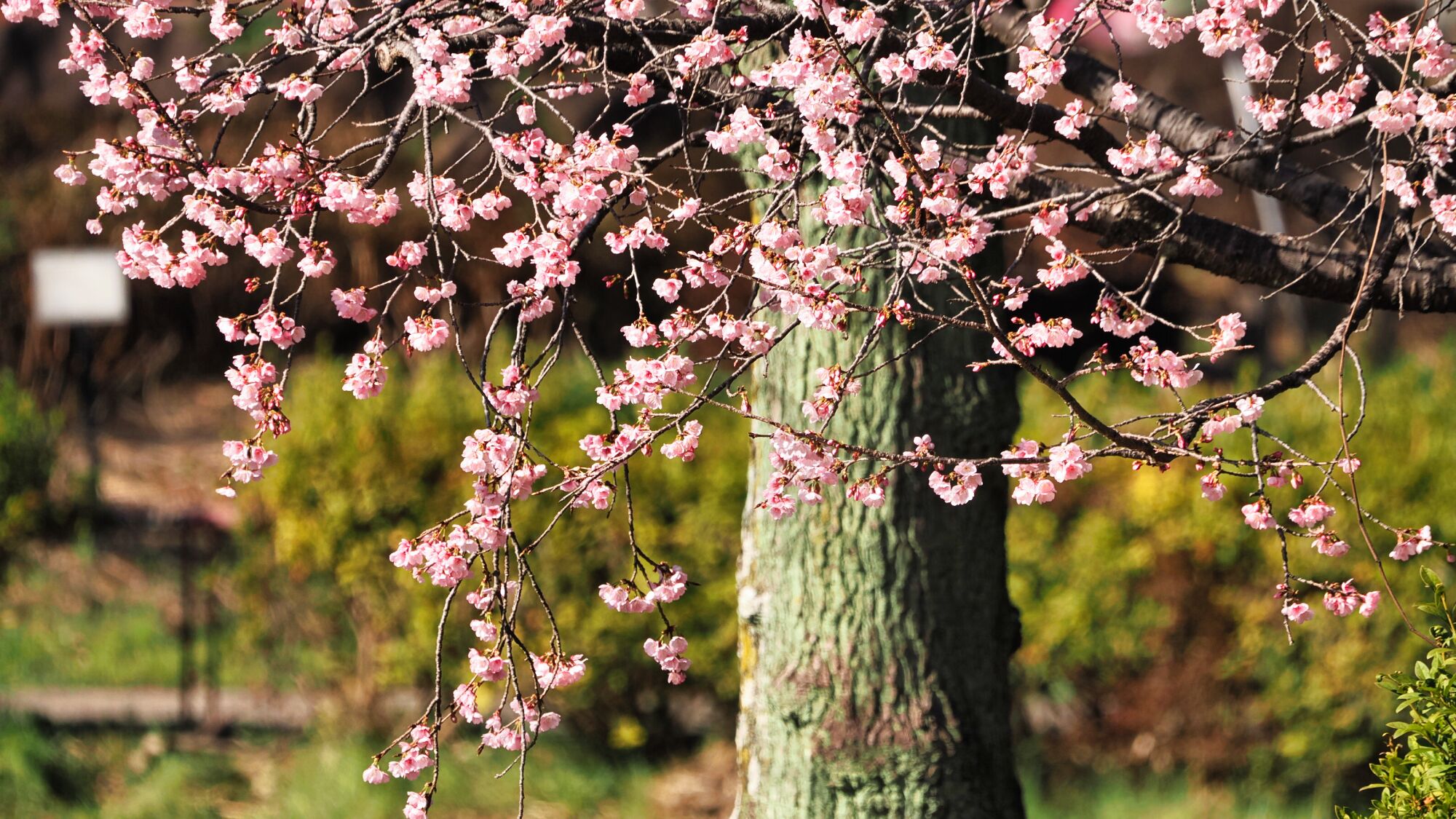 昨夜は強い雨が降った。午前中まで雨空が残ったが、11時頃から青空になった。梅林の梅は多くは散った。薬師池では河津桜にメジロがきていた。