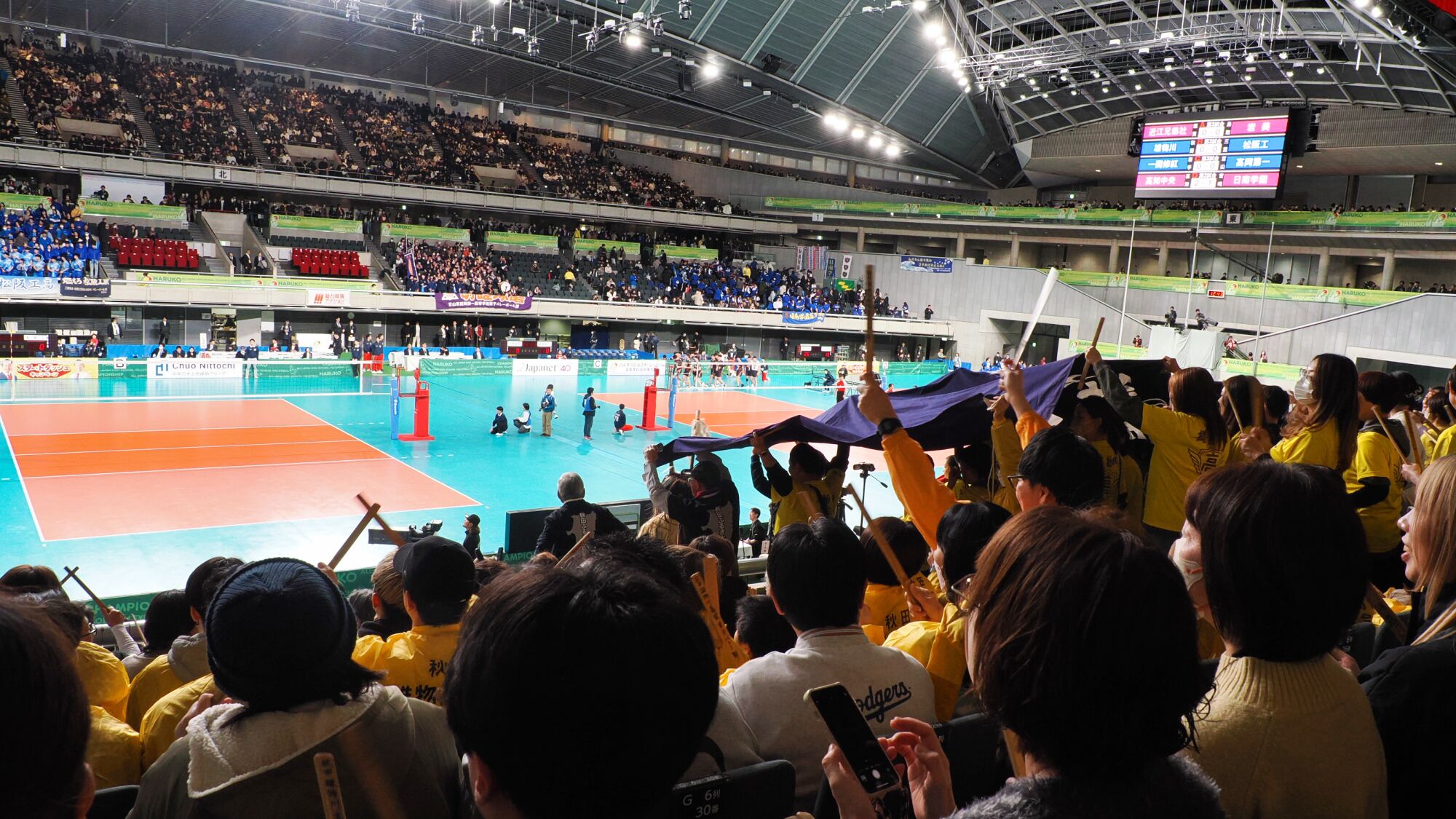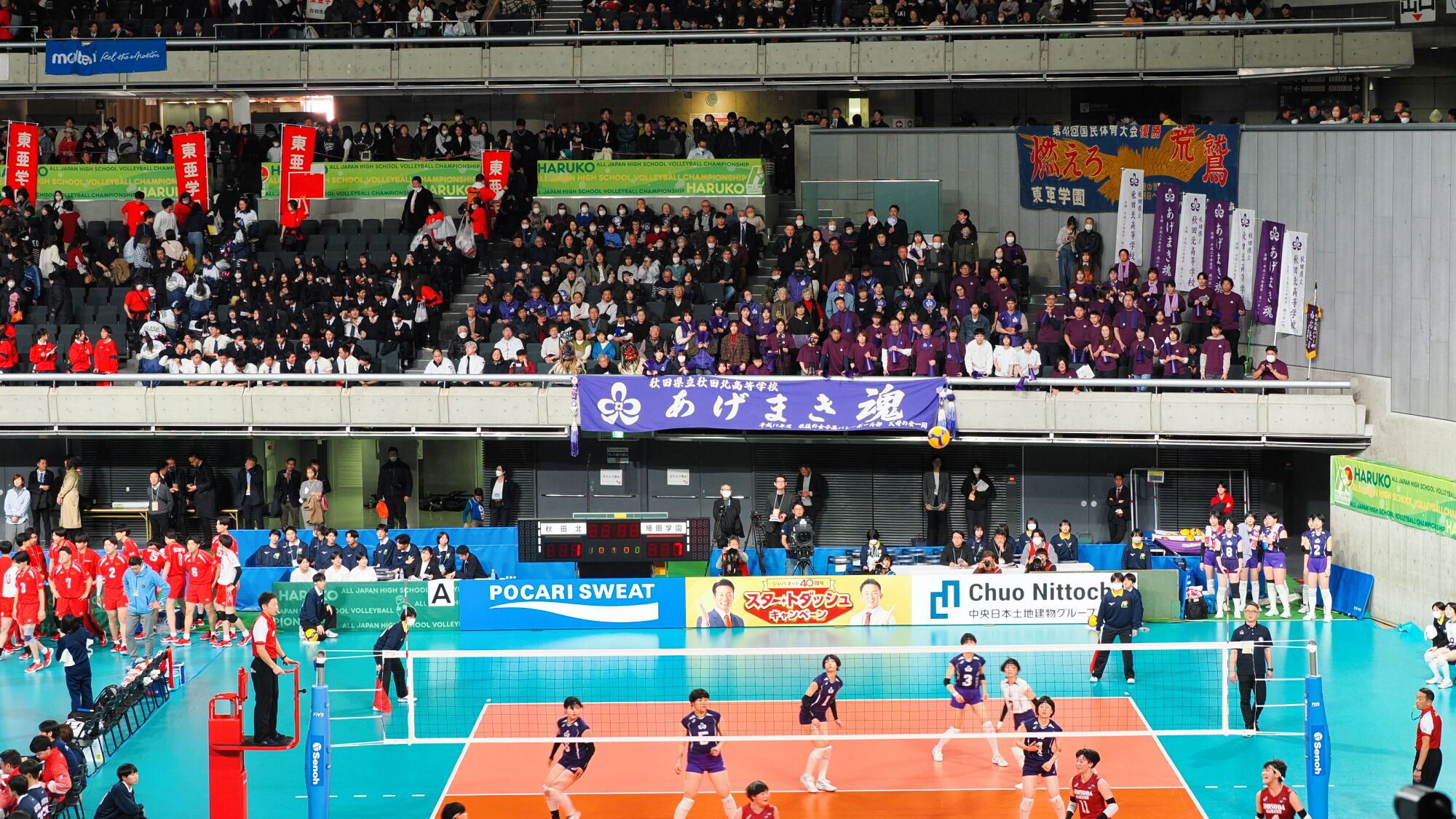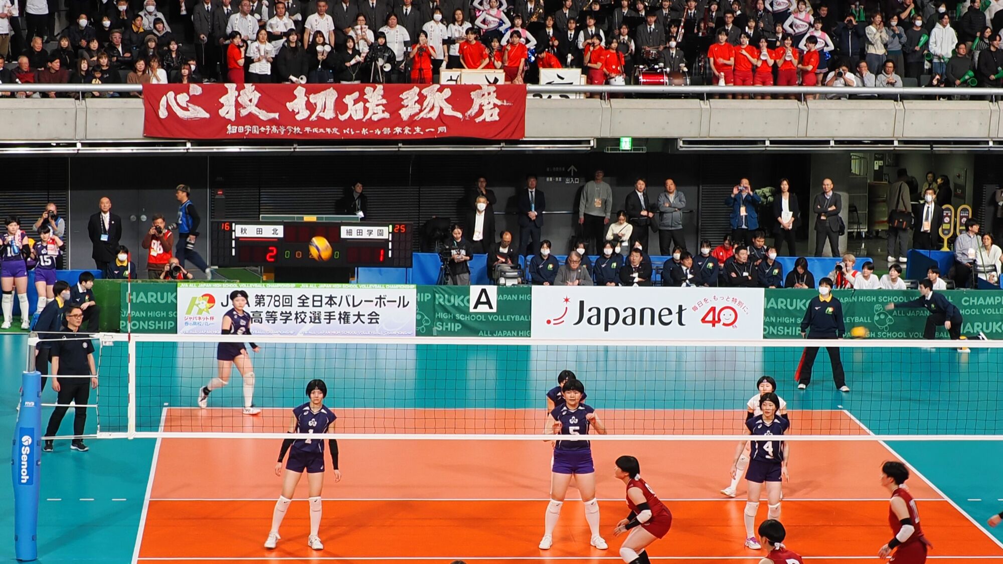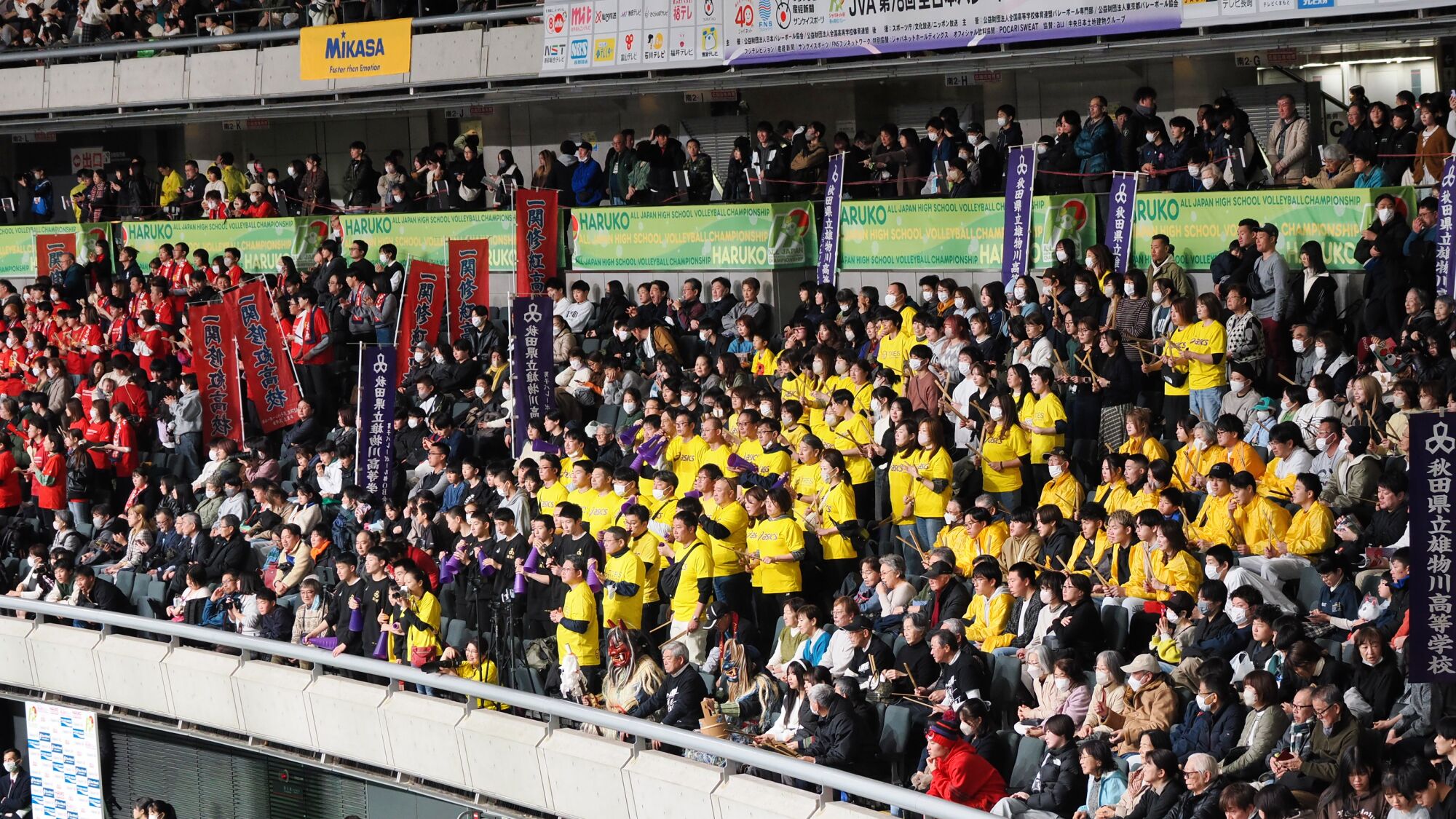 男子の雄物川高校は松阪工(三重県)と、女子の秋田北高校は細田学園(埼玉県)と対戦した。同じ日の同じ東京体育館での試合であり、秋田ふるさと応援団からも10数名が駆けつけ、秋田からの応援団や関東近隣の高校OB・OG、選手の親戚など、多くの応援者が秋田チームを支えました。
