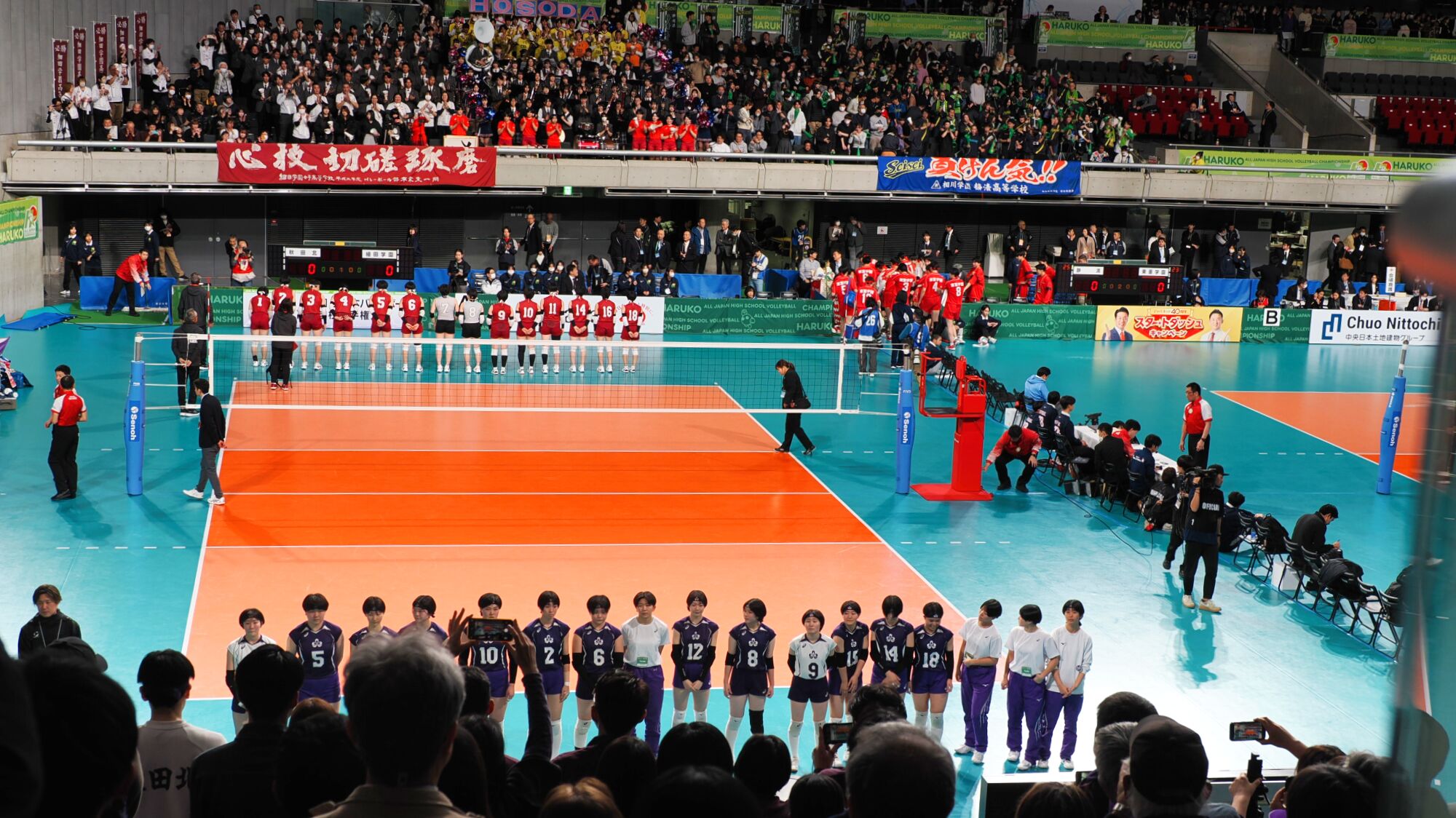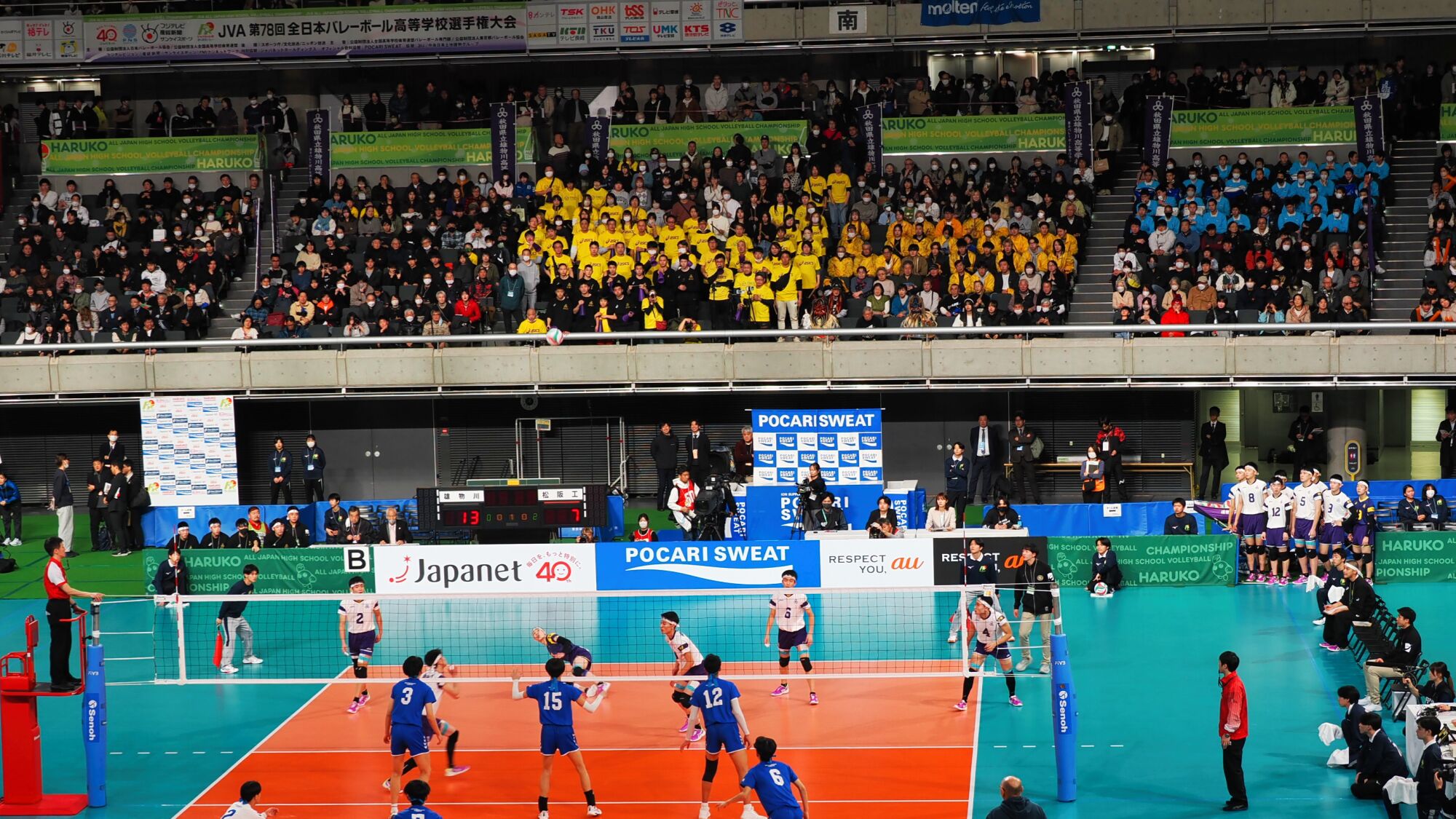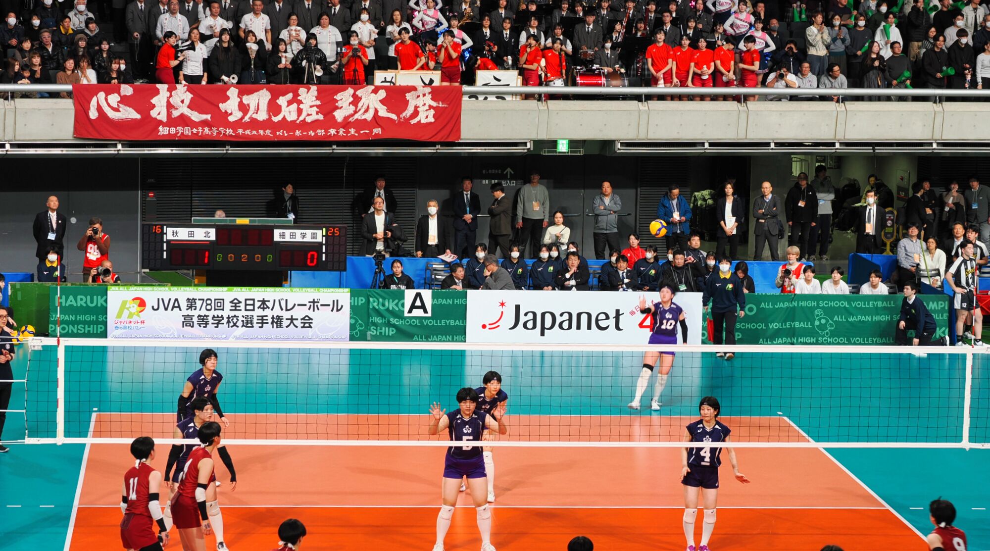 男子の雄物川高校は松阪工(三重県)と、女子の秋田北高校は細田学園(埼玉県)と対戦した。同じ日の同じ東京体育館での試合であり、秋田ふるさと応援団からも10数名が駆けつけ、秋田からの応援団や関東近隣の高校OB・OG、選手の親戚など、多くの応援者が秋田チームを支えました。