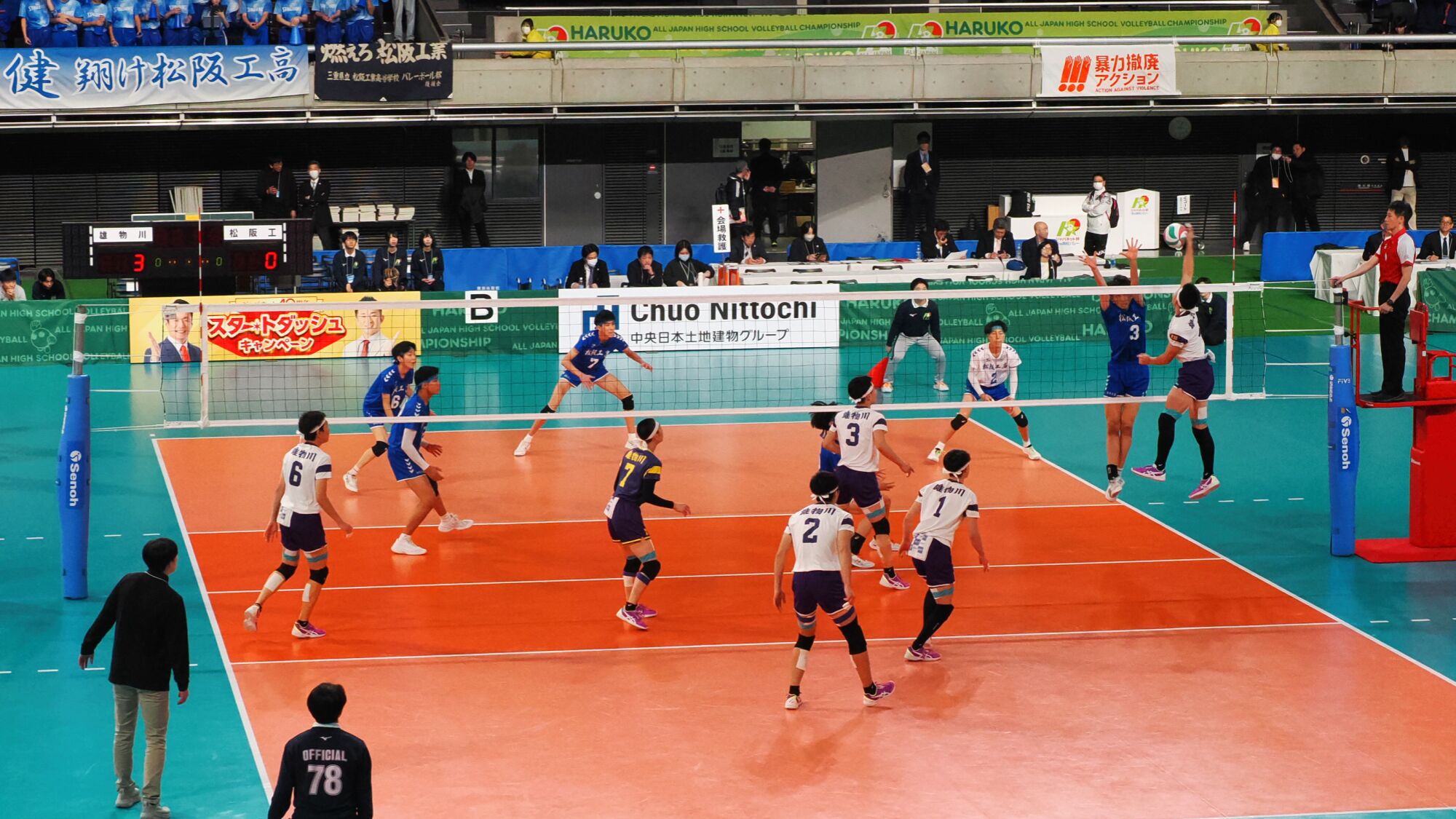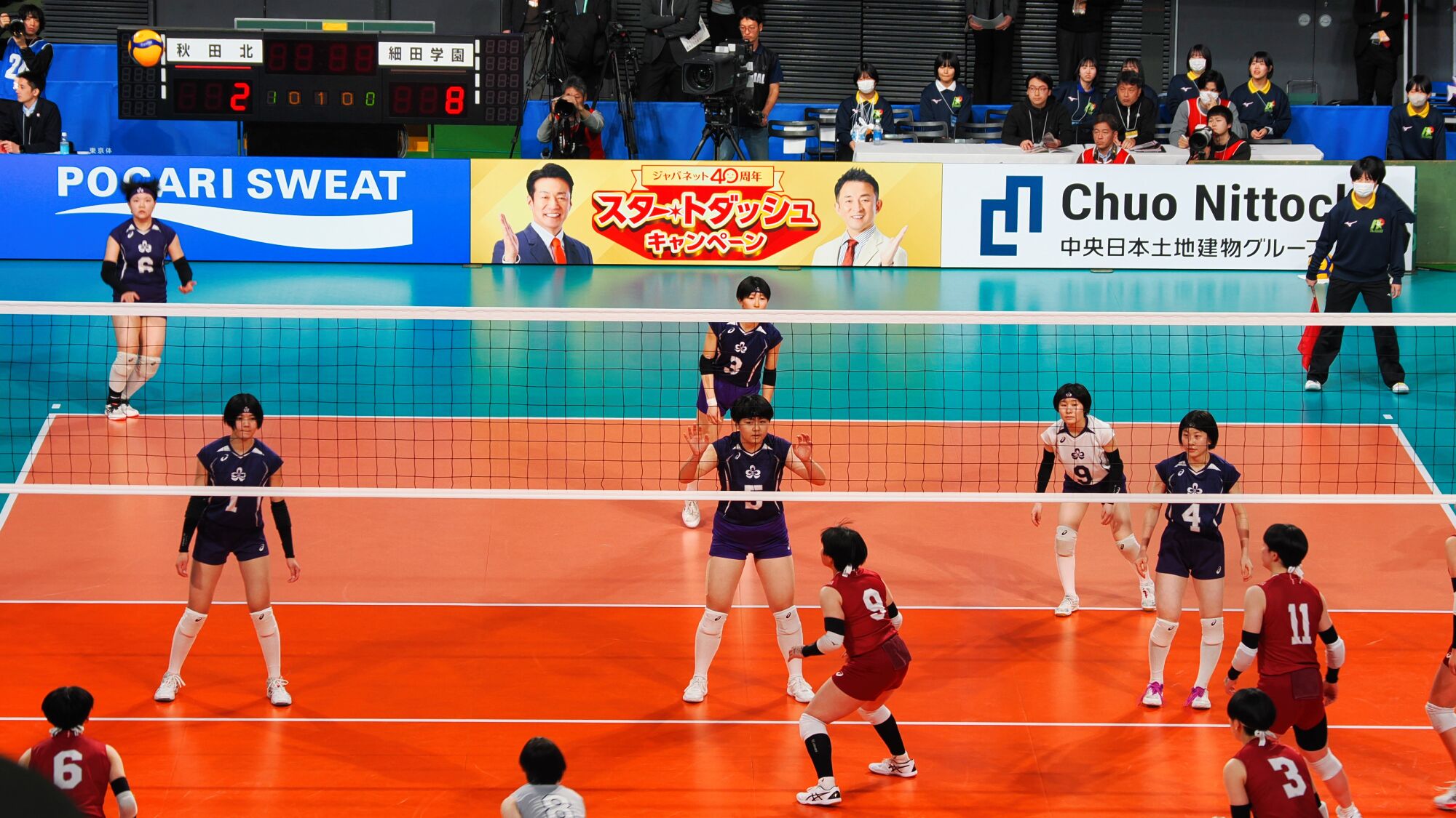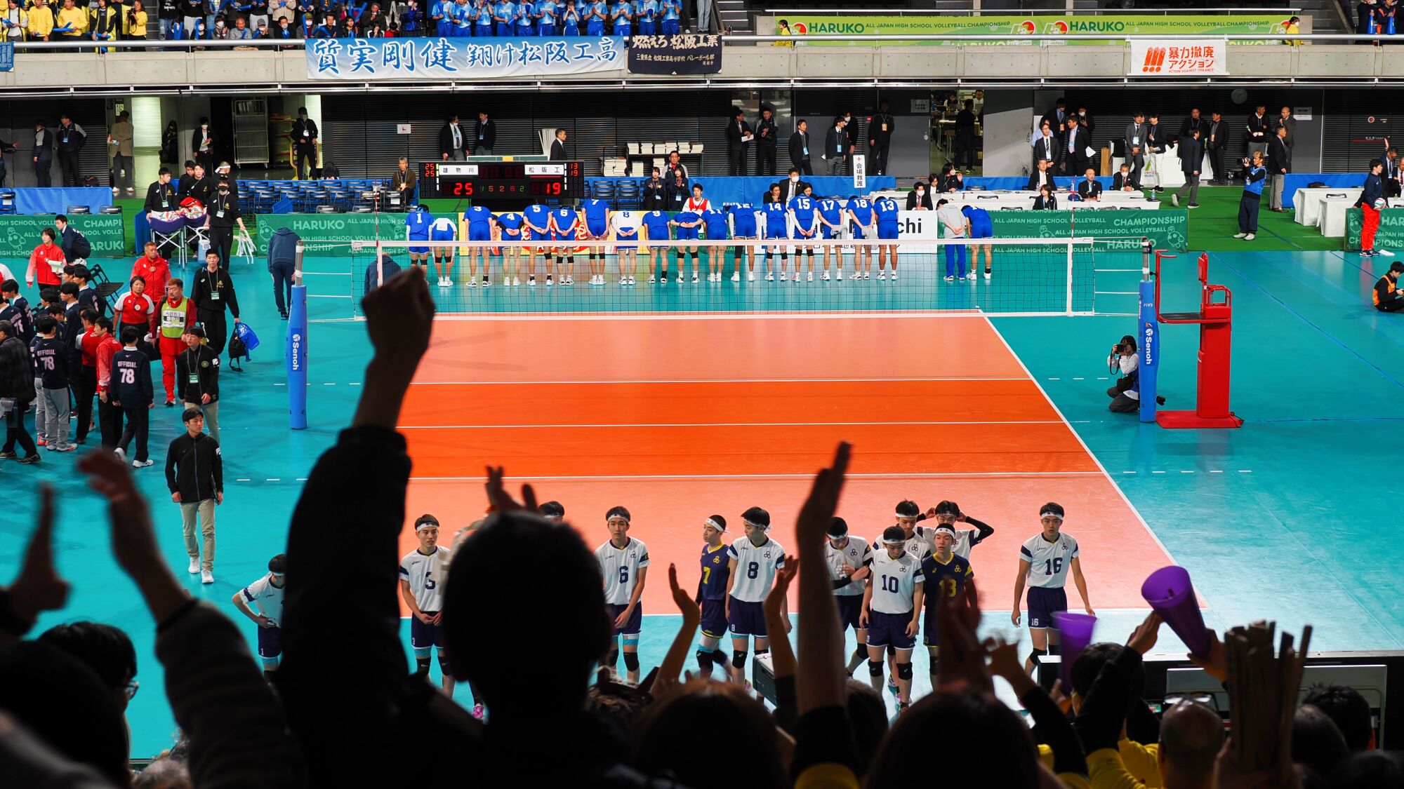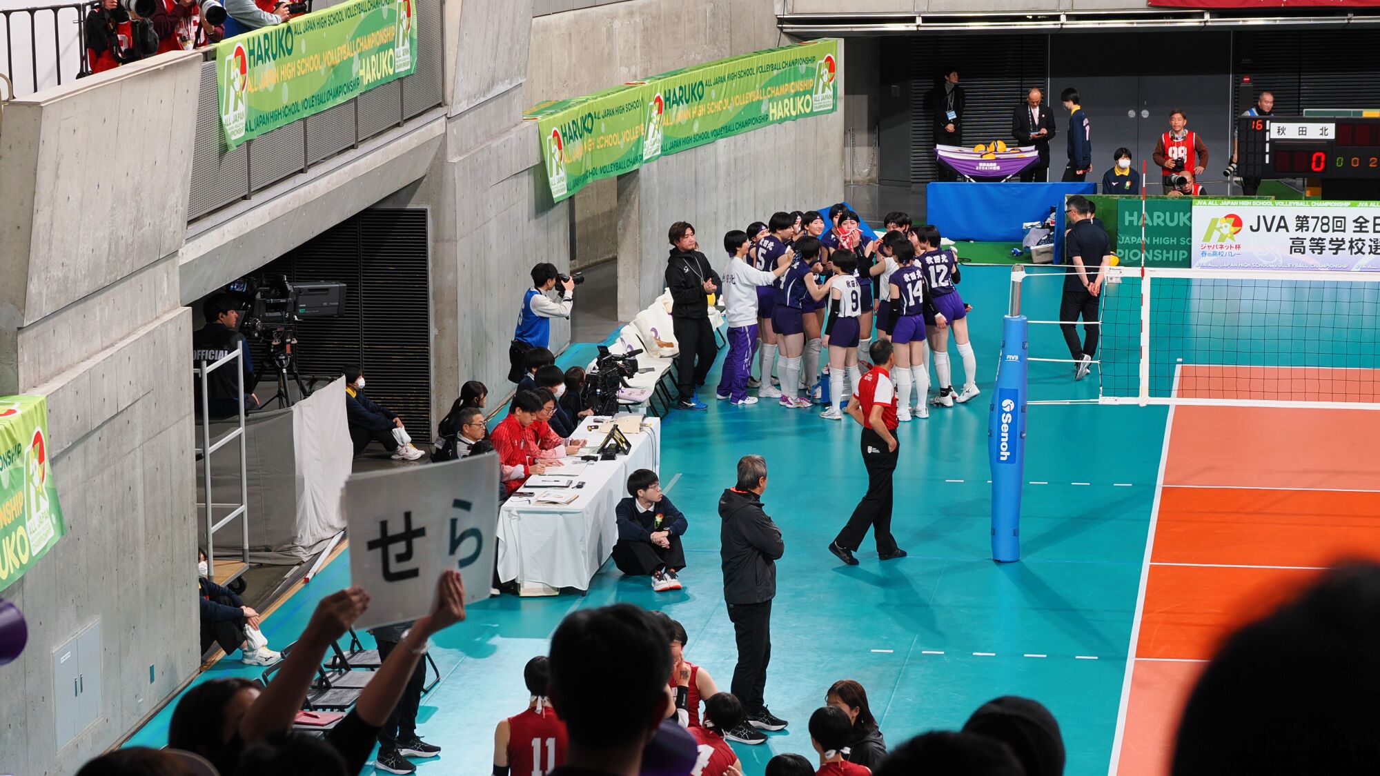 男子の雄物川高校は松阪工(三重県)と、女子の秋田北高校は細田学園(埼玉県)と対戦した。同じ日の同じ東京体育館での試合であり、秋田ふるさと応援団からも10数名が駆けつけ、秋田からの応援団や関東近隣の高校OB・OG、選手の親戚など、多くの応援者が秋田チームを支えました。