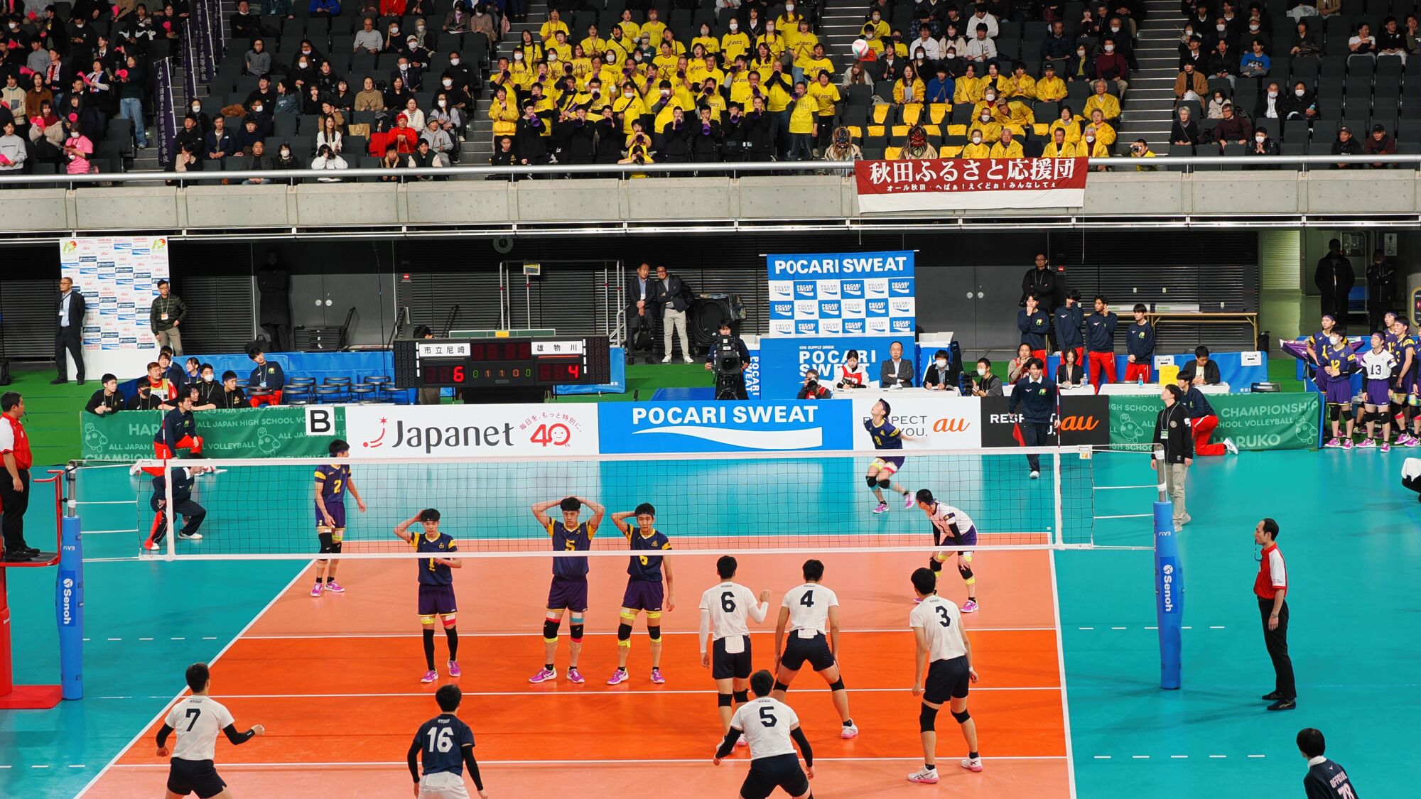 また秋田ふるさと応援団の副理事長の近江彰氏が同校バレー部のOBであることから、高校バレーの知識なども含めて様々な情報を伝えており応援にも一段と力が入る。