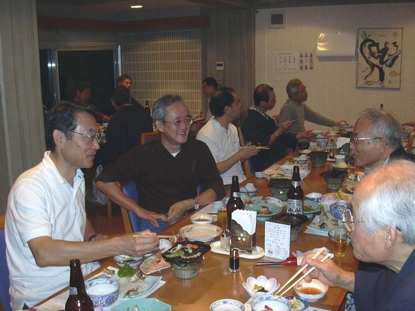 ![]() 毎年恒例の会社囲碁部合宿が2009/10/23から10/25に千葉県館山の保養所で開催された。 春の合宿に引き続き合宿幹事をやった。参加人数は囲碁部員37名と講師の光永淳造6段。光永プロは、先日6段に昇段された。 小田急相模大野駅前ロータリー待ち合わせ4人で車に便乗。初日は天気もよく気持ちのよいドライブであった。途中いつもの東京湾海ホタルで休憩。昨年までは東京南部と神奈川に住む参加者は久里浜からフェリーでの往復であったが、館山自動車道がアクアラインと繋がったのでフェリーはほとんど利用しなくなった。フェリー上では携帯囲碁盤利用の任意対局に、野次馬になって好き勝手に口を出し、楽しい時間をもったこともあった。 館山道経由、2時間半で館山に着いた。食堂で金目鯛定食を注文した。1,300円で小ぶりだが一匹の金目がつきおいしかった。保養所に2時過ぎに到着。先発隊はテニスをやっていた。幹事は3時からの開会式とリーグ戦の星取り表などの準備、保養所との打ち合わせ。プロジェクターと持参したノートパソコンの接続・操作のチェックなど忙しい。 開会式ではスケジュール説明や久々に参加した人の紹介、保養所の利用ガイド、リーグ戦ルールなどの説明をした。 そのあと早速、対局開始。私の最初の対戦は同じ3.5段登録の相手。結果は私の半目負けとなった。その後3連敗となって夕食。食堂では光永先生の昇段祝いの乾杯音頭を最長老にお願いし、特別注文してあった鯛の舟盛りを出してもらった。 今回参加者と会社囲碁部からのお祝いを先生に手渡した。鯵の刺身や鯛のしゃぶしゃぶ、豚の煮込み、小鯛の唐揚げなど大変おいしい料理を食べた。初日は12時に就寝。幹事は光永先生と同室。囲碁の合宿はいつも頭が冴えて眠れない。 2日目朝、7時に会議室へ行くとすでに対局している人がかなりいた。朝食後は、先生の棋譜解説があった。光永先生は対局者全員の棋譜を記憶している。参加者の特選棋譜解説と、先生が先日対局した、宮沢吾朗9段との棋譜解説をしていただいた。 プロ棋士の対戦では、布石の前段階からお互いに乱戦に持ち込もうとしているな、と解るそうである。この対局は光永先生から仕掛けたそうである。想像外の着手の連続で私レベルでは参考になることは少なかったが、素晴らしい高度な考え方があるということは実感できた。 5局目の局後の感想戦で、左下隅の手順は白が有利と考えた。では黒はどう打つべきだったかと光永先生の手空きに質問したところ、この展開は黒が厚くなって黒有利とのこと。なるほどそういわれれば、と納得。私レベルがここで伸びるためにはひと隅の部分の判断ではなく、碁盤全体を見ることが必要と思ったがなかなか難しい。 The PASSIONで腕を上げた中学2年生との対局。彼女は時間をつかわずパッパッと打つ。こちらも調子を合わせて打っていたら「ふーん」といって突然私の数10目の石が切られてとられてしまった。その後もあせっていいとこ無で負けてしまった。みなさんがいうとおり相当に強くなっている。 光永先生との7子局。前回は8子局で勝たせていただいた。右上辺で白が三さんに入り生きたために外の黒が厚くなり、外の白石が相対的に弱くなった。 ここは地を囲うべきか白石を攻めるべきか判断の分かれ道。先生の開会式での言葉を思い出した。 指導碁は結果を恐れずに攻めたほうがよいとおっしゃっていた。プロからすれば攻め合いは黒が間違いやすいので楽と思うが所詮指導碁なので、負けたほうが勉強になると思い、白の急所と思われるところに打ち、その後30手数ほどこれまでになかった程真剣に何度も私なりに読みなおし、結果的に投了していただいた。普通置碁は下手が攻めると勝手に間違って負けることが多い。時には攻め時には地を囲いと緩急合わせることができるようになりたいものである。 夕方まで4勝4敗で最後の対戦。対戦相手は久しぶりの参加であったが以前対戦したときとかわらず強い。 じっくりと読んでおり、私の大石がとられ投了せざるを得なかった。 彼はDクラスでの優勝で、任意の相手と打つクラス交流戦でも優勝した。 3日目、朝9時からの閉会式も無事おわり幹事の役割もほぼ終えることができた。帰りもアクアラインで帰ったが日曜日なので海ホタルはかなりの混雑。みんなで千葉名産のピーナッツ入りのソフトクリームを食べた。平均年齢60数才の4人がソフトクリームを並んでなめているのは珍しい光景かと思った。 12時前に相模大野駅に到着。自宅に12時半到着。テレビのNHK杯囲碁番組で坂井秀至7段と高尾紳路9段の対局を観戦したが疲れきって寝てしまいほとんど見れなかった。あとでNHKアーカイブで見ようと思う。 今回、春に続いて2度めの合宿幹事を務め終わり、帰宅後、保養所と先生にお礼のメールをうち、来年の幹事に引き継ぐ資料を作成した。